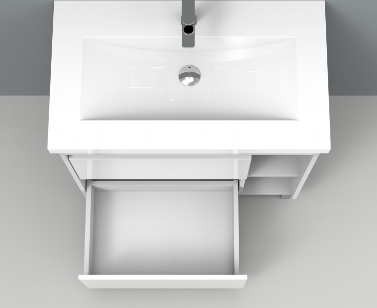 Справа устроена удобная открытая полочка, которая позволит быстро достать нужные мелочи и аксессуары.