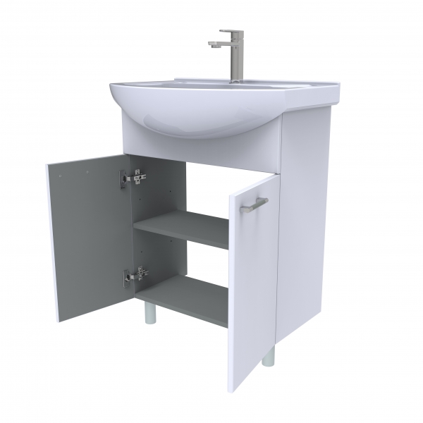 • Функциональность: внутреннее пространство разделено полкой или остаётся цельным, что позволяет удобно хранить бытовую химию, полотенца или аксессуары для ванной.