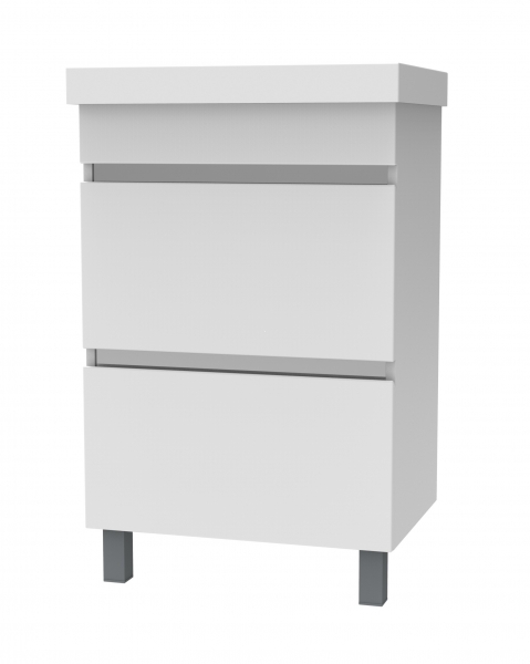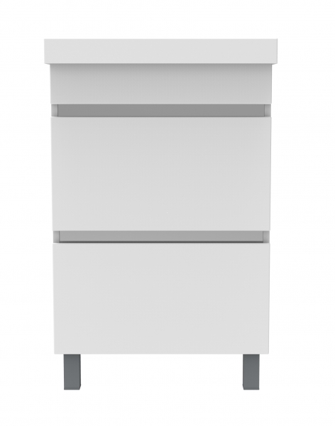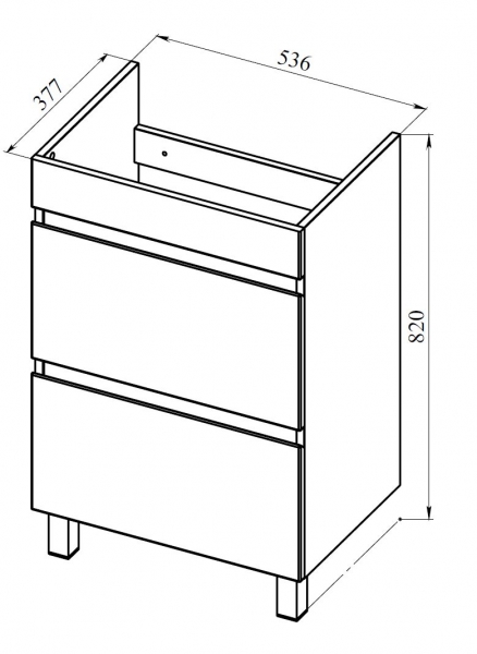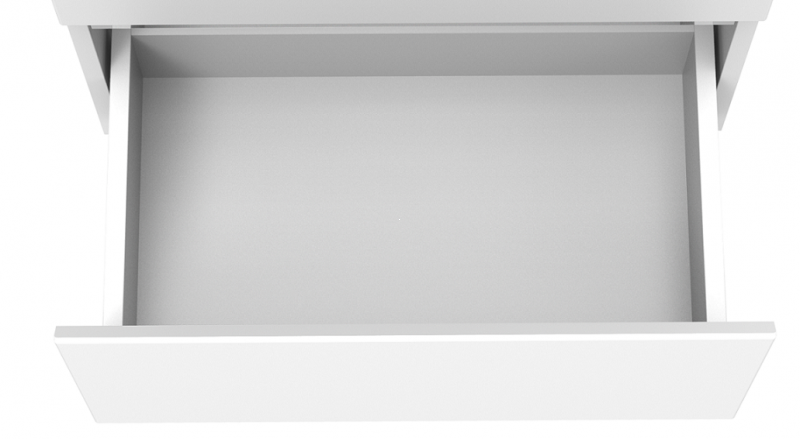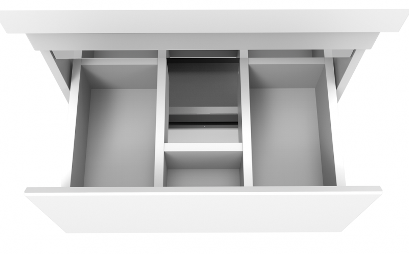 Внутри — два выдвижных ящика на скрытых направляющих с доводчиком: