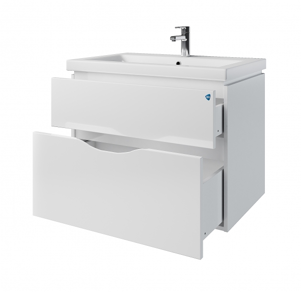 Подвесная тумба с двумя ящиками на шариковых направляющих частичного выдвижения. Цвет: белый. Корпус - ЛДСП с нанесением глянцевой эмали/фасад МДФ с нанесением глянцевой эмали