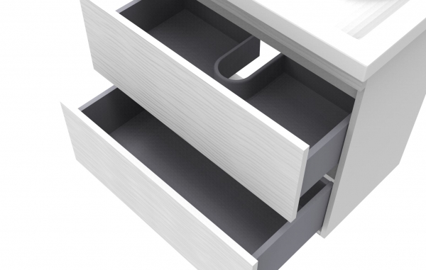 Фасады с фрезеровкой, имитирующей текстуру коры дерева и обладающие сложным рельефным узором, могут стать настоящим украшением интерьера. Такая конструкция сочетает в себе эстетическую привлекательность и функциональность.. Корпус выполнен из ЛДСП, покрытого белой матовой эмалью, которая обеспечивает устойчивость к воздействию влаги и легкость ухода за поверхностью.